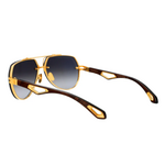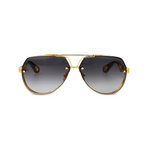 ブラック、ゴールドトーン、チタン、22K ゴールドメッキ、パイロットフレーム、ノーズパッド、メタルブロウバー、グラデーションレンズ、UVカットレンズ、ストレートテンプル、カーブエンド。こちらの商品には保護ケースが付属しています。