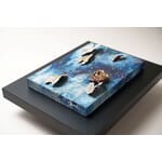 独自の着色方法を用いた、半立体の壁掛けの作品。